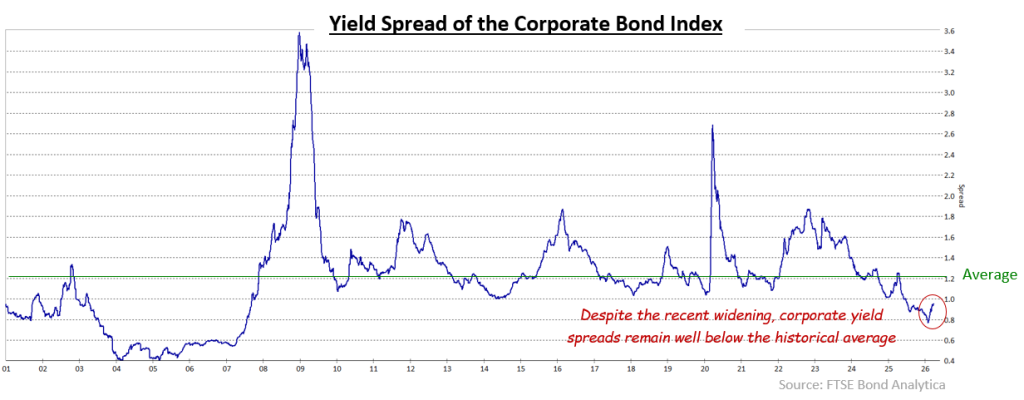 Financial markets moved lower in March amid substantial volatility caused by the U.S./Israel war with Iran. The lack of clear U.S. goals in the conflict combined with often conflicting and/or contradictory comments from the U.S. president as well as Iran’s effective closure of the Strait of Hormuz resulted in significant day-to-day swings in financial asset values. Interestingly, bonds did not enjoy a safe haven bid in the uncertainty as investors chose instead to focus on potential inflationary risks as the price of oil surged more than 50% in the month. Credit spreads widened somewhat for both provincial and corporate bonds, but benchmark bond yields appeared more sensitive to shifts in oil prices than were yield spreads. The FTSE Canada Universe Bond index fell 1.97% in the month.