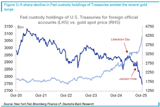 Gold will continue to shine. Gold’s performance this year has been remarkable, surpassing the expectations for even for those of us who had a positive outlook coming into the year. This may not continue at the same rate but is not yet at an end since central banks are long-term buyers and not traders so we expect that they will continue to add to reserves, with the public now also joining in to drive this most recent surge through US$4,000. That new contingent of buyers should be viewed as less committed and driven by momentum trades and this has added to the volatility in the price of gold, including the surge to $4400 and the very fast 10% retreat. The bigger story will remain the fact that central banks want to diversify their holdings away from the U.S. dollar but do not see the Yen of the Euro (or certainly not the Chinese Yuan) as a Reserve Currency. With U.S. fiscal deficits expected to continue to run at recessionary levels of over 6%, the borrowing requirement of the U.S. Treasury will ensure that foreign reserves continue to look at alternatives to the ‘mighty buck!’ After sitting on the sidelines for much of the early period of gold’s rally, retail investors have taken a bigger role in recent months, in part enthused by the debasement theme. Pictures showing queues of buyers lining up outside bullion retailers went viral on social media. Options volume on the top gold-backed ETFs and futures contracts, a popular way for retail investors to take big bets on the metal’s value, have surged. The chart below supports our view that central banks have been diversifying away from U.S. treasury holdings with the price of gold being the prime beneficiary of this shift. This remains a secular bull market and the precious metals had simply deviated far too much from their positive trendlines which, in our view, remain intact.